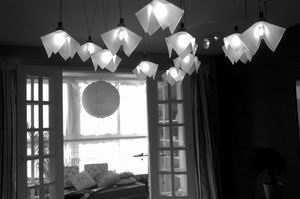 如果是大家族过年,而且原有空间只有一个吸顶灯,那么整个空间的光源就会显得过于单一。建议在房间客厅的四角安装中式的大红灯笼(瘦长型),灯头可使用20瓦的螺旋节能灯(照明度非常强,因为要考虑灯光穿过布纱的光耗损失量)。这样既让顶面的空间层次有了错落的变化,又能通过灯的颜色增添节日气氛,也不会因为光线太暗而使人视觉疲劳。