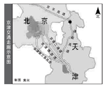 届时,北京到天津间将有四条高速公路和一列城际轨道相连。