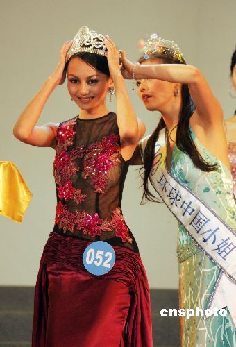 2006年1月21日晚,2006环球小姐中国(北京)选拔赛决赛在北京举行。最终罗瑛获得冠军、勾莎获得亚军、罗旭获得季军。据悉,获奖的环球小姐(北京)将担任2008北京奥运会形象大使。图为罗瑛将桂冠戴在头上。 作者:老罗
