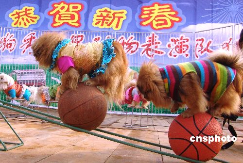 2006年1月23日,郑州市动物园特别邀请的“超级狗狗秀明星”表演团开始了第一场演出,这些经过专业训练的小狗们精彩的表演带给观众无穷的乐趣。作者:马健