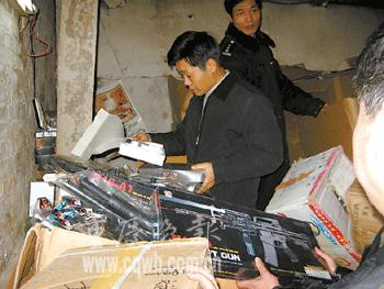 中新网1月24日电 据重庆晚报报道,春节前夕,各种玩具枪销售走俏,近日,重庆警方在渝中区一居民楼内搜出866支仿真枪。