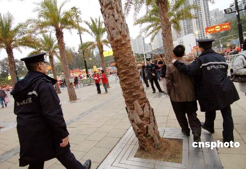 图:香港警方在年宵花市抓“扒手”