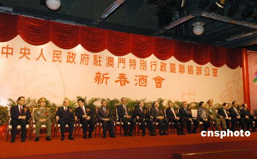 中新社澳门一月二十五日电 (记者 梁永强)“春风洋溢颂九洲,瑞气浩荡满濠江”。值辞旧迎新之际,中央人民政府驻澳门特别行政区联络办公室二十五日在澳门举行二00六年新春酒会,全国政协副主席马万祺、澳门中联办主任白志健、澳门特别行政区行政长官何厚铧、外交部驻澳门特派员公署特派员万永祥等与澳门一千多名各界人士出席酒会。