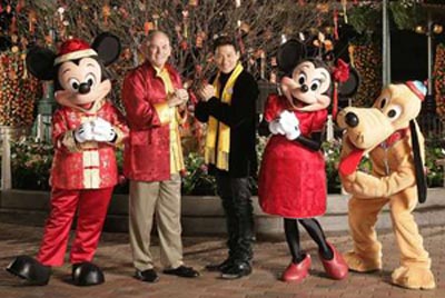 张学友与香港迪士尼乐园新任执行副总裁及行政总裁安明智、米奇老鼠及其它“迪士尼朋友”一起向大家拜个早年,恭祝大家合家平安,每天都开开心心。由年初一起至二月十二日,乐园每天都会在睡公主城堡前举行舞龙舞狮及其它精彩表演贺新春。