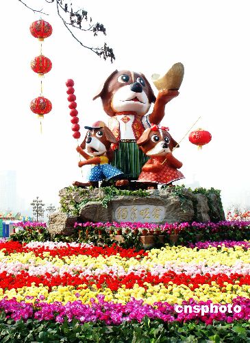 2006年1月27日,京城最大的“招财狗”在北京莲花池公园安装完毕。这个高6米的大狗在游客经过其身边时将高喊“新年快乐、狗年旺旺”。“招财狗”落户也标志着莲花池公园第六届庙会准备工作完毕。作者:樊甲山