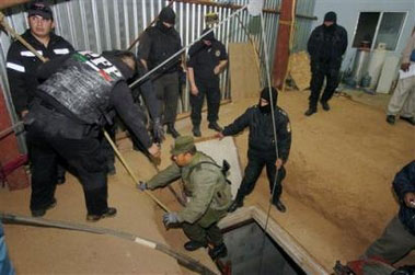 中新网1月28日电 据美联社报道,2006年1月25日,美国和墨西哥警方联合发现了一个穿越美墨边境的地下通道,该通道全长1155米,深27米,该通道在墨西哥一侧的入口位于边境隔离墙南侧175米处的一个仓库里。警察在通道内发现了大量正要从墨西哥运往美国的大麻。(春风)