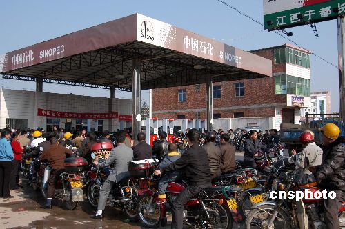 1月28日,江西省赣州市的加油站出现摩托车和小车排队等候加油的场面。据了解,由于春运期间铁路运力紧张,赣州市出现了排队等候、限量加油的紧张场面。另外,春节即将来临,赣州市城区成品油日需量也由原来的290吨增加到450吨。这种排队等候加油的“壮观”场面已持续了多日。有关部门表示,供油紧张的局面将会很快结束。作者:刘念海