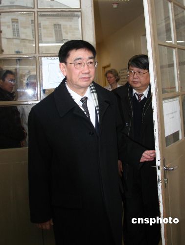 在埃及车祸中受伤的一对香港父子林嘉川、林展藤二日被送往巴黎的一家医院救治。图为中国驻法大使赵进军(前)和领事部主任施月根参赞三日上午到医院看望林氏父子。目前,林氏父子的伤势稳定,精神状况良好。 作者:钟诚