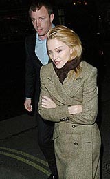 中新网2月7日电 据外电报道,上周四,流行天后麦当娜与丈夫盖伊·里奇一同外出,在伦敦一家豪华餐厅用膳。当晚,麦姐穿着一件长款外套,看上去非常高雅。虽然老公里奇就在身旁,麦姐却没有戴着婚戒,与里奇一前一后,没有以往的亲密状。尽管最近一段时间以来,有关其婚变的传闻甚嚣尘上,麦姐的发言人在近日告诉《人物》杂志,他们夫妻二人的关系还“好”。