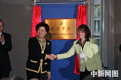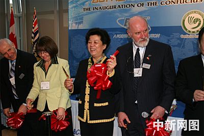 讲话后,陈至立和加拿大不列颠哥伦比亚省副省长邦德女士共同为孔子学院揭牌。