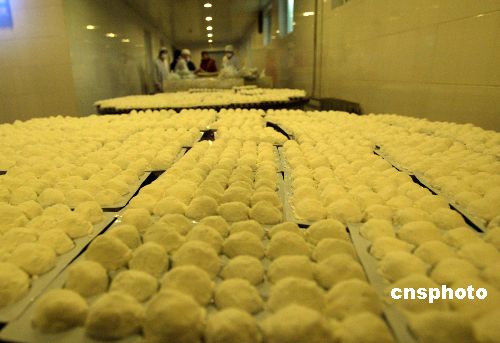 二月八日,随着中国传统佳节--元宵节的临近,北京多家著名的老字号稻香村、桂香春等加紧生产元宵,以满足市场需求。作者:任海霞