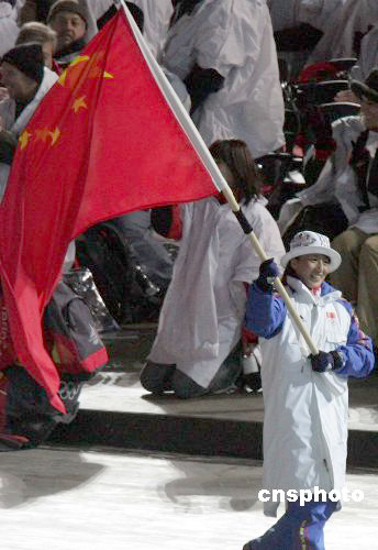 2月10日,第20届冬奥会在意大利都灵奥林匹克体育场开幕,杨扬出任中国代表团入场旗手,这是中国冬奥代表团首次启用女选手做旗手。作者:武仲林