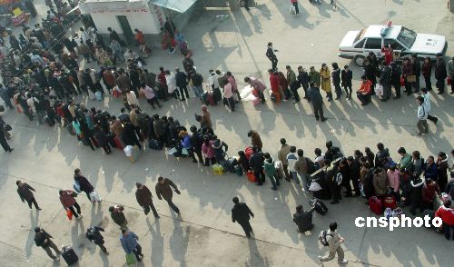 | 2月13日,安徽巢湖汽车站出现节后客流最高峰。据该站站长介绍,客流由民工与学生“两股人潮”组成,主要“流向”合肥及芜湖方向。该站发往芜湖的19台大巴与发往合肥的72台大巴从早上5点30分发车,至上午10点,已发送旅客5000人次。尽管所有大巴“马不停蹄”地运转仍难解车站客运压力,3000余旅客在站内站外滞留,市交警与站警共同在车站内维持秩序。截至下午两时,由于车辆循环及时,滞留旅客已基本得到缓解。据统计,当日该站发送旅客将突破15000人次。 作者:李远波