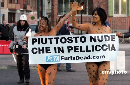 图:都灵冬奥会期间反皮草人士半裸示威