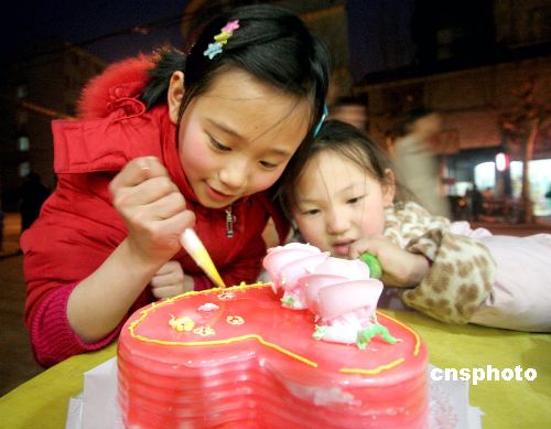 2月13日,一女孩自己动手,精心制作蛋糕,做为送给父母的情人节礼物。作者:王璋闻