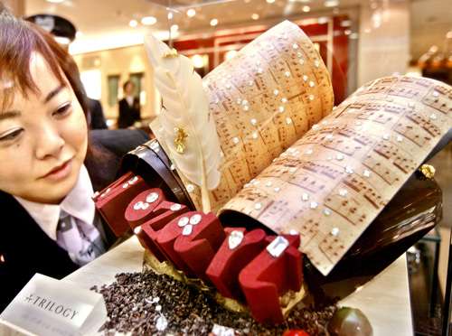 在日本,东京的高岛屋百货公司售卖一个值五亿日元的巧克力乐谱状蛋糕,上面有一百零七枚钻石装饰。