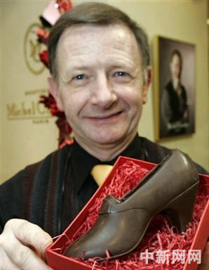 2006 年2月13 日,法国巧克力师Michel Chaudun在东京一家百货商店展示他为情人节特别设计的巧克力鞋子“灰姑娘”,其售价大约为3,150 日元(约合26.70美元)。
