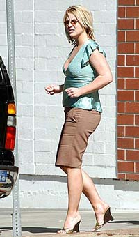 中新网2月14日电 据外电报道,前不久,小甜甜布兰妮应邀参加NBC热播情景喜剧的拍摄,在加州片场的拍摄间隙,布兰妮出来吃午餐被偷拍,从这张刊登在《人物》杂志上的照片可以看到,布兰妮产后的身材恢复得不尽人意,与孕前的性感体态不可同日而语,而且,穿着品位也是让人不敢恭维。亮蓝色的超低胸上衣紧紧裹住小甜甜丰满的胸部,半球呼之欲出,而布兰妮下身却穿了条及膝的休闲短裤,颜色看上去很不搭调,不知道这是剧组的安排,还是布兰妮的选择。