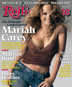 中新网2月15日电 据外电报道,刚刚在第48届葛莱美颁奖典礼捧得三奖而咸鱼翻身的流行歌手玛丽亚·凯莉,当仁不让地成了《滚石》杂志的最新封面人物。复出后的玛丽亚仍然是边唱歌边“卖弄性感”,也许是衣衫遮不住丰满身材,封面上的玛丽亚酥胸半露,超低胸上衣展现给歌迷一片春光,而玛丽亚也毫不吝啬的露出小蛮腰,真可谓意气风发!