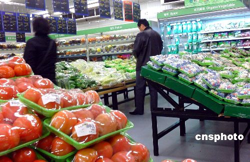 2月17日,据有关部门统计,2006年春节长假没有出现持续的雨雪天气,基地蔬菜供应储备充足,大部分叶菜类蔬菜价格并没有太大涨幅。春节过后,不少蔬菜价格开始下滑。如包心菜,过年时卖到2.8元-3.2元/公斤,现在降到了1.4元-1.6元/公斤,大白菜也从过年时2元-2.4元/公斤降到1.2元-1.4元/公斤。图为顾客在上海某超市内选购蔬菜。作者:井韦