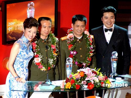 中新社北京二月十八日电(记者 张量)二00五·中国十大系列英才颁奖典礼今天在此间举行。百位各界英才被推选上榜,其中“航天英雄”费俊龙、聂海胜荣获特殊贡献奖。