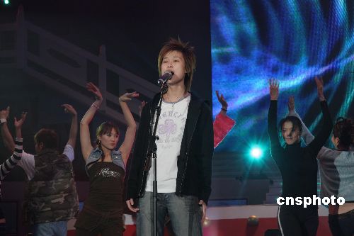 由两岸三个文化单位主办的大型慈善晚会“情声艺动 相约东南”,2月19日晚在台北“巨蛋”举行。大陆“超级女声”李宇春在演出前排练“我的心里只有你没有他”。作者:黄少华
