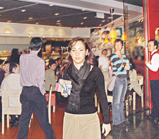 虽然与城中“超级”钻石王老五拍拖,但Rachel昨日亦如常在Citibank Tower上班,约下午一时半,一身端庄OL打扮的她从电梯大堂到饭堂准备买午饭,即被十多名记者包围。此时有七、八名保安立即上前替她解围,起初面带笑容的Rachel亦被吓得花容失色,连午饭也未及买便表示希望离开,及后由保安陪同下返回办公室,看来成为小小超的女友,承受压力的确不少。