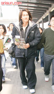 下午言承旭马不停蹄出席《2005百事新星音乐训练营》,吸引两岸三地传媒采访,场面热闹。这次言承旭将会逗留两天拍新广告,他用不怎么熟练的广东话说:“主要做平面造型。(什么造型?)光头。”百事高层利小姐补充:“当然神秘啦,总之好性感。”言承旭表示不介意性感,但最怕秀肌肉,因为希望身材好一点,现在比较瘦,没有腹肌可秀。他在台上勉励参赛者时表示,自己曾参加模特儿比赛,当年是18岁那年退役后去参加的,因为比赛的奖品是一部汽车,可惜他没有得奖。