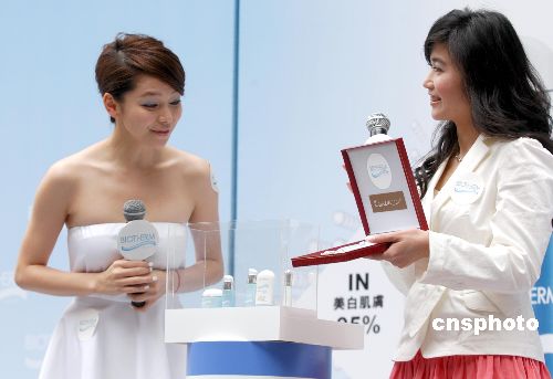2月23日,台湾艺人徐若瑄在香港出席美容品牌BIOTHERM全新美白排毒系列产品宣传活动,著名年轻珠宝设计师李诗颖为该品牌设计精美纯银项链,并向徐若瑄送上作特别礼物。作者:邓庆乐