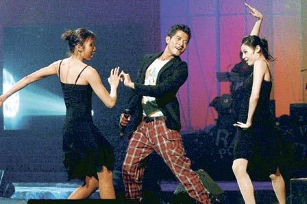 据香港媒体报道,郭富城昨日起程到美国举行巡回演唱会,他称舞台服装也要再修改,皆因体型有变。他在港举行Part II演唱会时,体重跟现在相差了10多磅,现在是136磅故裤头也很紧,需要改大。他笑说不想在舞台上出洋相。记者问他在美国会否趁机猎艳﹖他笑说今次到纽约的目标是“觅Show”而不是猎艳,他渴望演出歌舞剧,到纽约是大好机会参考演出。