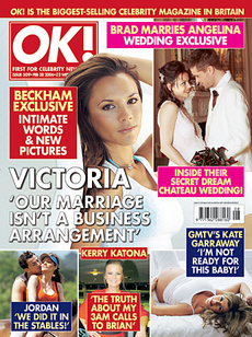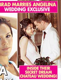 日前,美国版《OK》杂志的封面上出现了皮特与茱莉的婚纱照!旁边还写着“皮特娶茱莉”“城堡秘密婚礼”的字样,茱莉穿着白色的婚纱,手执鲜花,皮特也穿着同款色系的礼服。看来两人的好日子将近了。目前,皮特与茱莉正“赖”在巴黎不走,也许是怕美国的狗仔队打扰,安心的待产吧。