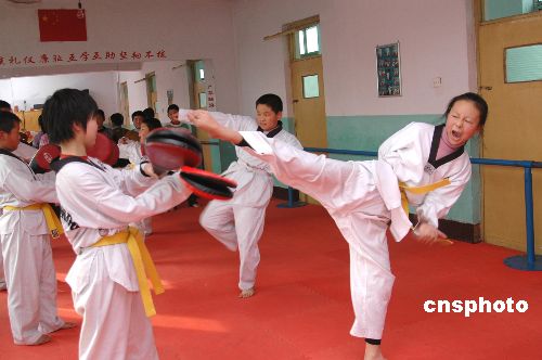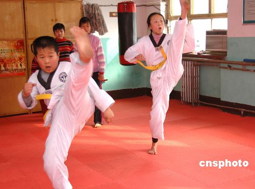 2月25日,河北省新乐市一些儿童正利用星期天在该市剑桥文化艺术学校学习跆拳道。随着教育观念的改变,家长不在只是注重对孩子文化知识的教育,也开始根据自己孩子的身体、兴趣爱好等方面实际情况,加强对他们的教育和投资。作者:贾敏杰