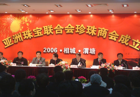 据介绍,此次成立的珍珠商会所属的亚洲珠宝联合会是由澳门特别行政区正式批准成立,主要开展相关的学术研讨会、专家论证会等,下设金银珠宝玉器厂商会、翡翠商会、宝玉石商会。二00五年亚洲珠宝联合会在对渭塘珍珠进行考察和调研后,为推动中国珍珠产业发展,决定在渭塘成立珍珠商会,这也标志着渭塘已成为中国珍珠交易的中心。