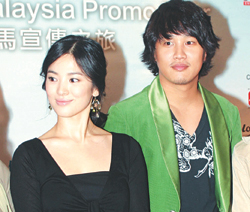 中新网2月28日电 据光华日报报道,宋慧乔和车太铉到马来西亚宣传《蓝色风暴》,记者会一度出现混乱,两名艺人的经理人扬言腰斩记者会!