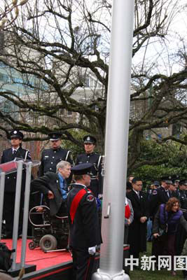 中新网温哥华2月28日电(记者吕振亚)“现在,全世界的目光都投向温哥华!”在一片欢呼声中,奥运五环旗今天中午在温哥华市政府广场升起,并将飘扬1450天,迎接二0一0年冬奥会盛典的到来。