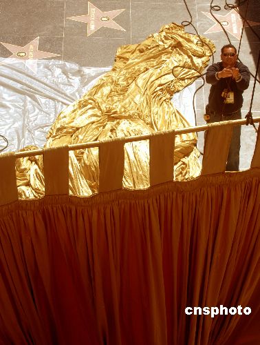 图:奥斯卡在柯达剧场前升起金色帷幕