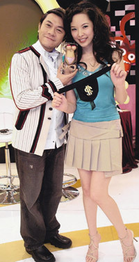 代班搭档天心很贴心,准备了一个上空女郎造型鼠标,和一个绣着大大的金钱符号的性感内裤送给蔡康永,还怂恿蔡康永当场换上,吓得蔡康永倒退三步。