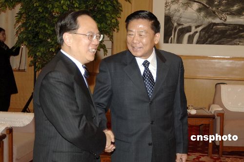 三月三日,香港特别行政区行政长官曾荫权在北京拜访国家广播电影电视总局局长王太华。作者:徐曦弋