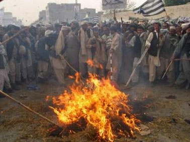 据报道,约300名大学生在首都焚烧布什的人像,有人手持写着“魔鬼布什滚走吧”的标语。距首都6公里外的拉瓦尔品第,约1000人聚集在6公里外的主要公路上示威,并高呼反对口号;2000名警员则手持警棍驱散人群,并拘捕至少5名示威者。南部城市卡拉奇也有约1000名伊斯兰教徒焚烧美国国旗。