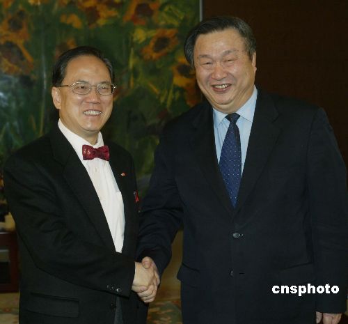 三月四日,香港特别行政区行政长官曾荫权在北京拜访中国信息产业部部长王旭东。作者:史利