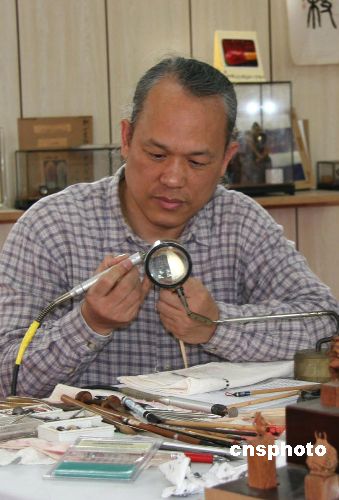 他还认为,两岸文化同根,加强同行的交流,对彼此取长补短,光大国学,共同促进很重要。目前他已有七、八件作品放在杭州天石微雕艺术馆展出。