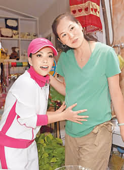 阿妹今天看见身怀六甲孕的陈怡安,忍不住摸着她的肚子说,“小小圆圆的,好神奇”!陈怡安则是希望未来女儿的声音可以像阿妹一样好。