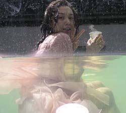 朱茵身穿纱裙浸在水池中,她都怕会移位走光,导演为免她尴尬,便实时清场。而工作人员亦好合作,实时离场。工作人员笑言若不离开,怕再看会流鼻血。拥有嫩滑肌肤的朱茵,觉得护肤最重要饮水,因为可以排毒。同时也要保持开朗心情,她在家会做SPA及面膜,当然也要多点休息。