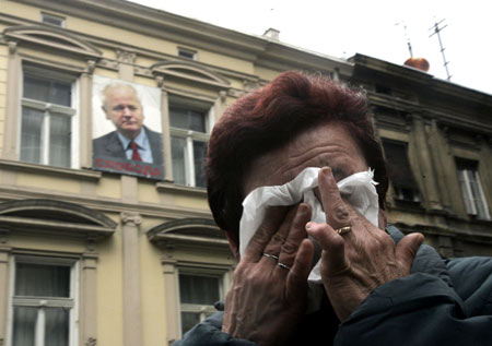 图文报道:塞尔维亚妇女在米洛舍维奇肖像前哭泣