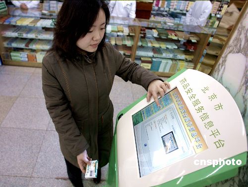 | 3月12日,在北京王府医药商店,顾客在使用自助式药品安全服务信息平台验证刚购买的药品真伪。在这套信息平台的服务器中存储了国家食品药品监督管理局已公布的所有药品的批准文号、条形识别码以及与安全用药密切相关的药品政策公告。这些信息通过平台传至各个终端,消费者在购药后,只需将药品名称、批准文号、条形码或防伪编码等其中一项内容输入终端,信息平台就会自动验证该药品“身份”。公众还可以通过留言的方式提建议举报线索等。目前王府井医药商店、医保全新王府井药店和北京桐君阁大药房都安装了这种信息平台。作者:老罗
