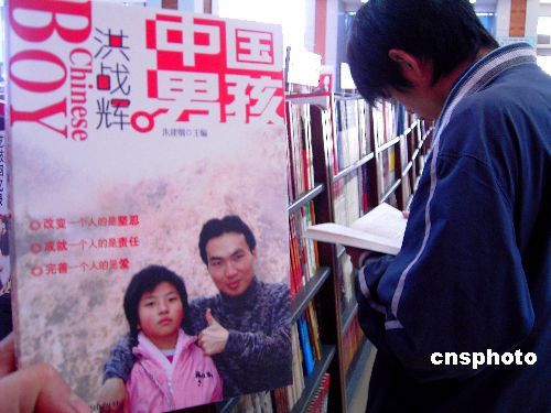 年度感动中国人物洪战辉带妹求学12年的事迹轰动全国,3月13日,湖北宜昌新华书店里,读者在捧读《中国男孩洪战辉》一书。据悉,由湖南人民出版社出版的《中国男孩洪战辉》一书,上市后首月进入“全国非虚构类畅销书2006年排行榜”第17位。目前发行总量达240余万册,并一直持续热销。 作者:刘君凤