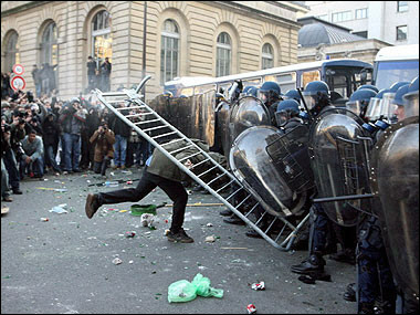 十四日在巴黎左岸拉丁区,约一千名抗议者向警察扔石头、瓶子和铁栏,警察则用催泪气还击。据报,有九名警员受伤,九名示威者被捕。