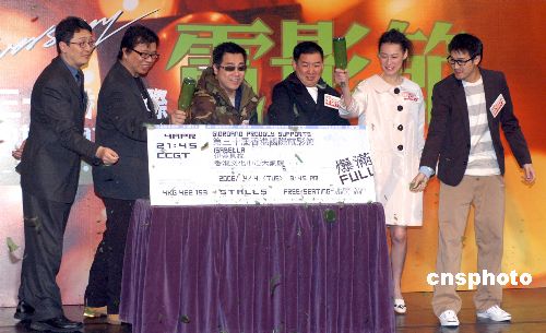 3月15日,“第三十届香港国际电影节”开幕电影《伊莎贝拉》举行记者会,“《伊莎贝拉》在柏林电影节勇夺最佳音乐银熊奖,该片演员梁洛施、曾国祥、演员兼监制杜汶泽及导演彭浩翔(左三)、音乐总监金培达(左二)在会上以影片中经常出现的昼面---爆樽,庆祝该片网上预售爆满。作者:邓庆乐