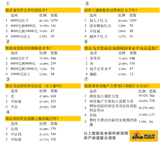 此外,购房人对房价会否上涨的问题分歧巨大,基本上双方人数相当。这与开发商目前已经形成全面的涨价预期有明显差异。(肖宾)