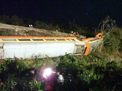 据了解,96次莒光号表订17日晚上20时08分自台东开出,原订晚上23时12分抵达高雄,在晚上21时46分行经屏东路段时发生意外,3节车厢滑落约10米高的驳崁,另有两节车厢倾斜,车头全毁。台东火车站立即派出救援列车前往抢救,晚间由高雄到台东两列车受到影响,台铁派接驳游览车前往接运。